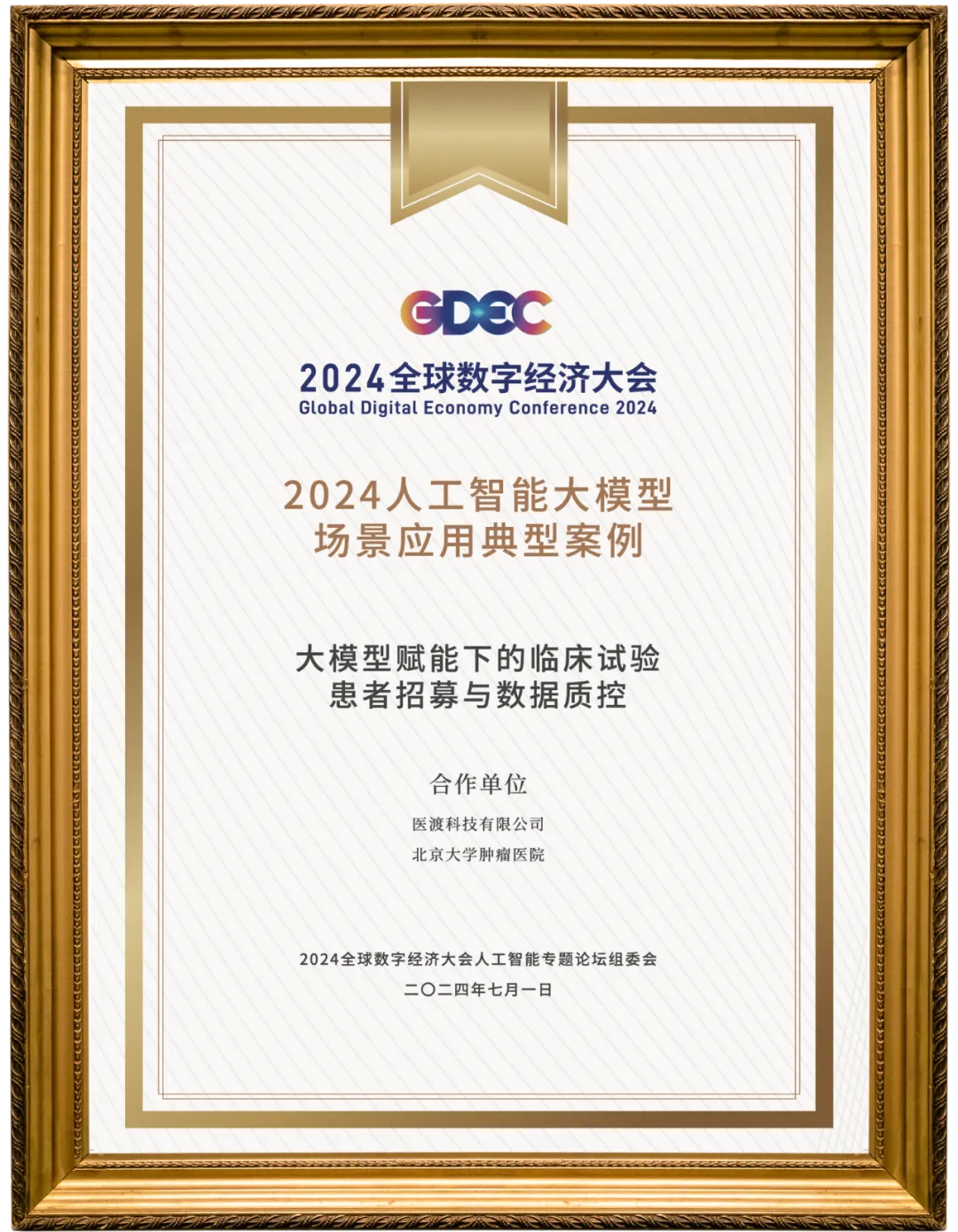 “2024人工智能大模型場(chǎng)景應(yīng)用典型案例”亦在人工智能專題論壇上發(fā)布。醫(yī)渡科技“大模型賦能下的臨床試驗(yàn)患者招募與數(shù)據(jù)質(zhì)控”憑借創(chuàng)新性、實(shí)效性和大模型落地醫(yī)療行業(yè)的典型性成功入選。