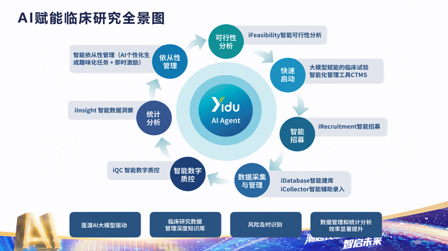 徐濟(jì)銘分享道,醫(yī)渡科技還將AI技術(shù)深度融入臨床試驗(yàn)各環(huán)節(jié),構(gòu)建覆蓋臨床試驗(yàn)全流程的智能化解決方案,全面提升試驗(yàn)效率與質(zhì)量。